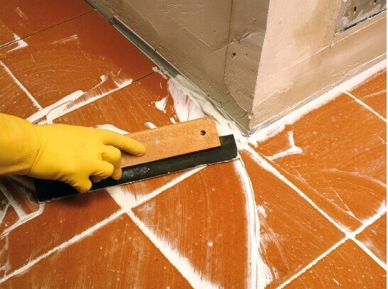 - Répandez la barbotine sur le carrelage.