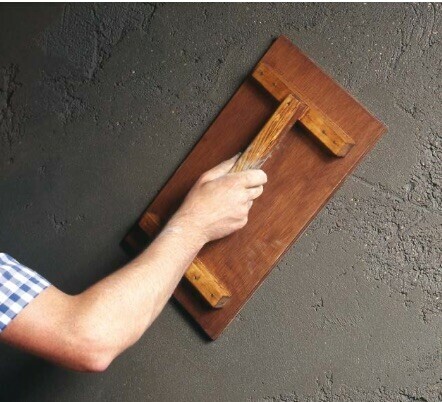 Étalez un mortier plastique gâché avecdu sable fin au platoir ou à la taloche pour réaliser la couche finale. La finition peut se faire à l'éponge, lissé, glacé, gratté, ou brossé.