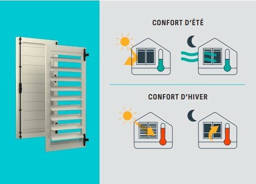 Deux fabricants français, Lallemant Fermetures et Corrèze Fermetures, entreprises du Groupe Cola présentent une volet persienne à battants original, en aluminium, à lames orientables motorisées, participant à une bonne gestion de la lumière, mais aussi à la température intérieure des pièces du logement.